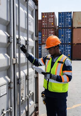 Basisinspectie voor zeecontainers voordat deze worden geopend, gelost of betreden.