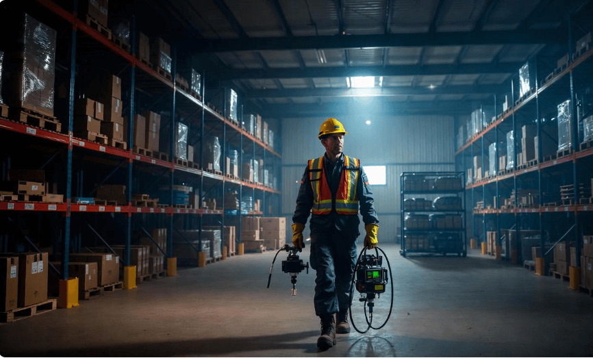 Inspectie van magazijnen en andere afgesloten opslagruimtes op mogelijke gasgevaarlijke situaties.