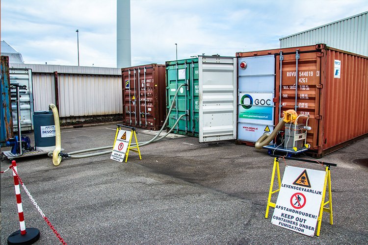 Diepgaande inspectie van zeecontainers inclusief detectie van fumigatiemiddelen, vluchtige stoffen en zuurstofwaarden.
